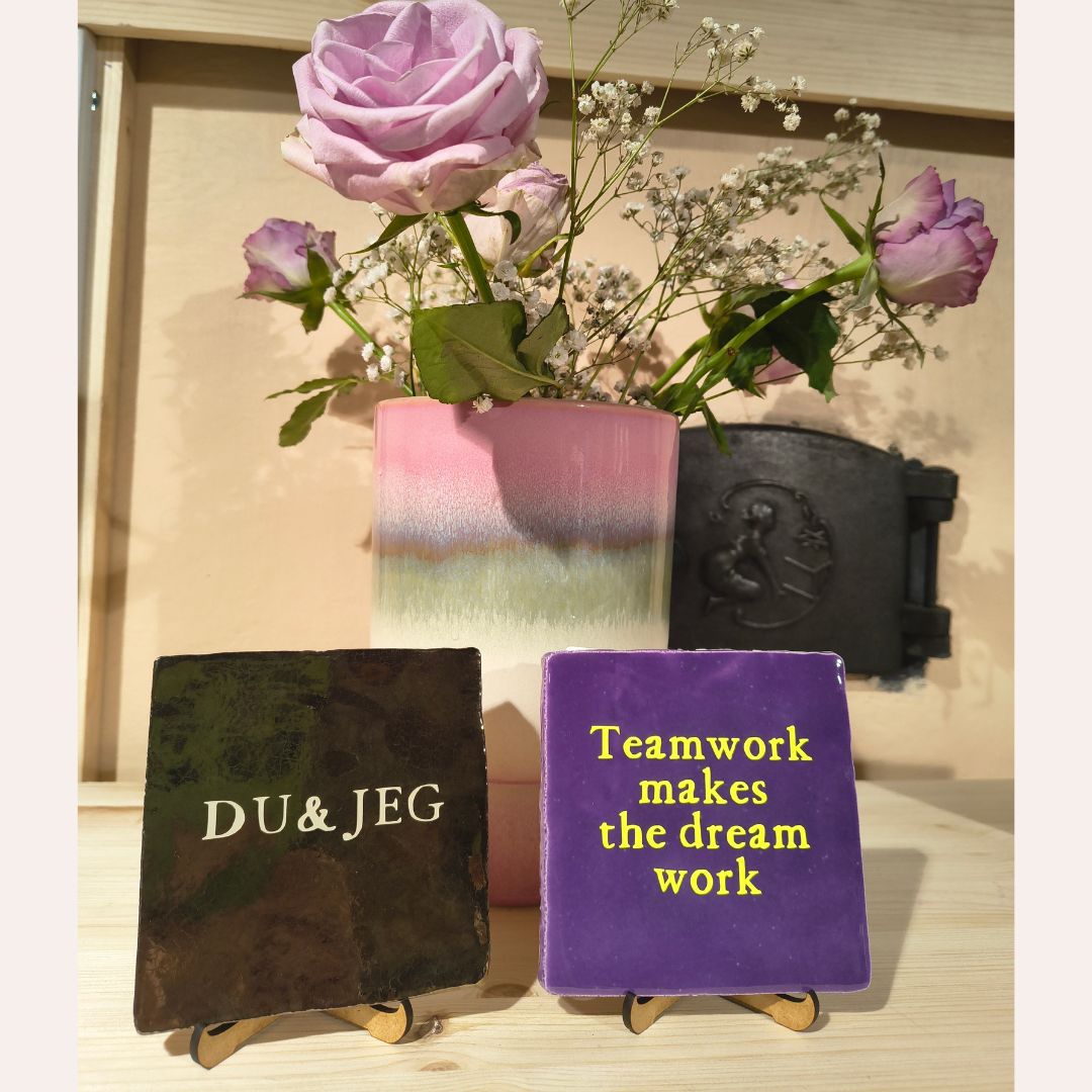 En lilla flis med teksten Teamwork makes the dream work. En liten påminnelse om at samarbeid gjør hverdagen litt enklere og litt hyggeligere. Fin på kontoret, i pauserommet eller hjemme der folk samles. Også en koselig gave til kollegaer eller til teamet som alltid sier «vi tar det etter lunsj».